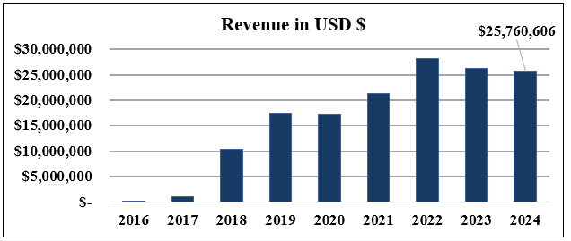 - Q4 2024 revenues of $6,585,825 were consistent with Q4 2023 revenues of $6,551,865 and were 2.8% higher than Q3 2024 revenues of $6,406,528.
